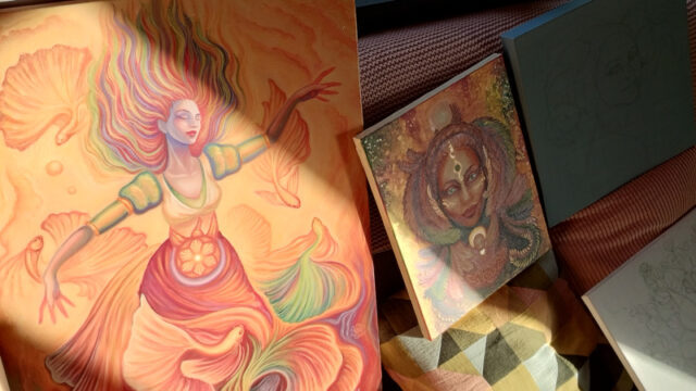 Techniques diverses : aquarelle, encres, gouache, crayon, stylo bille, numérique… Voire un peu de photo.